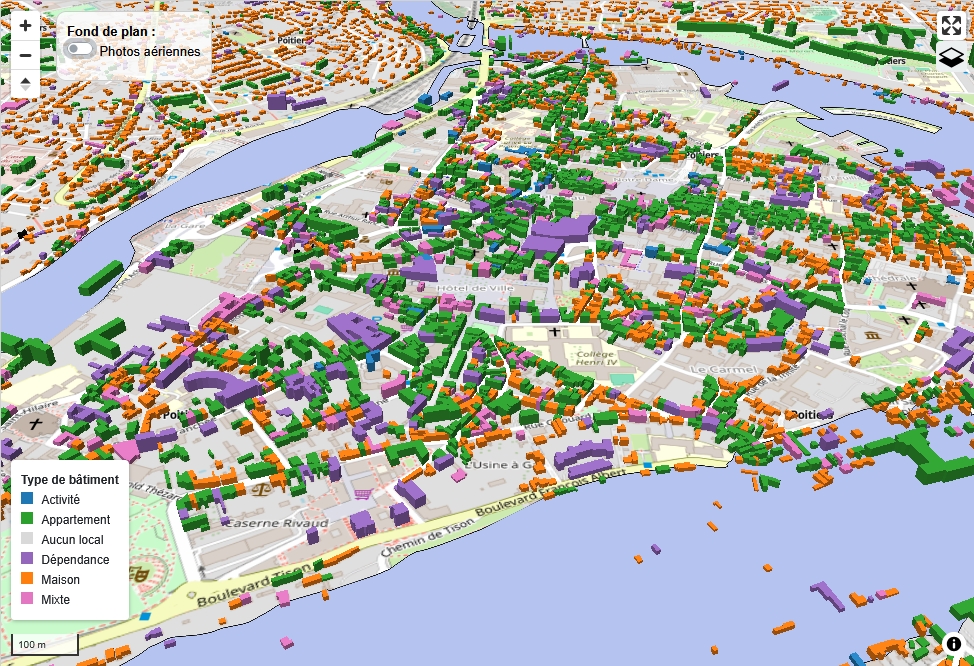 Zoomer sur la carte (molette de la souris) pour visualiser les bâtiments.